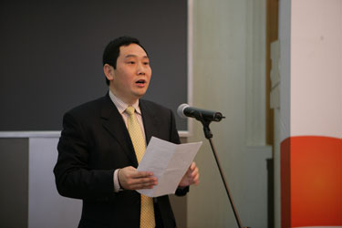 江西省建設工程有限公司董事長宗贛生在成立大會上發表設獎感言